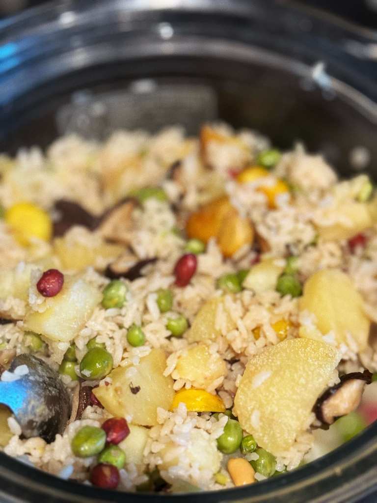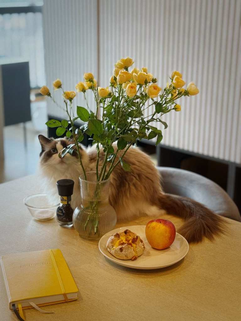 此地秋天的实感是一个星期都不会满的抽湿机,但每天刷着小红书北京或是纽约多伦多的秋天,都让我进入了好好庆祝秋天的情绪。昨天用新鲜的板栗和气炸锅烘烤出焦香味的洋芋和蘑菇,以及新鲜的青豆闷了一大锅秋收饭,吃起来非常满足。看着网上热门的餐桌风水局,发现家里只是没有黄色的鲜花,于是下单了蜜柚果汁色的多头玫瑰,决定跟风一次,希望最近悬而未决的事情能够有好的进展。