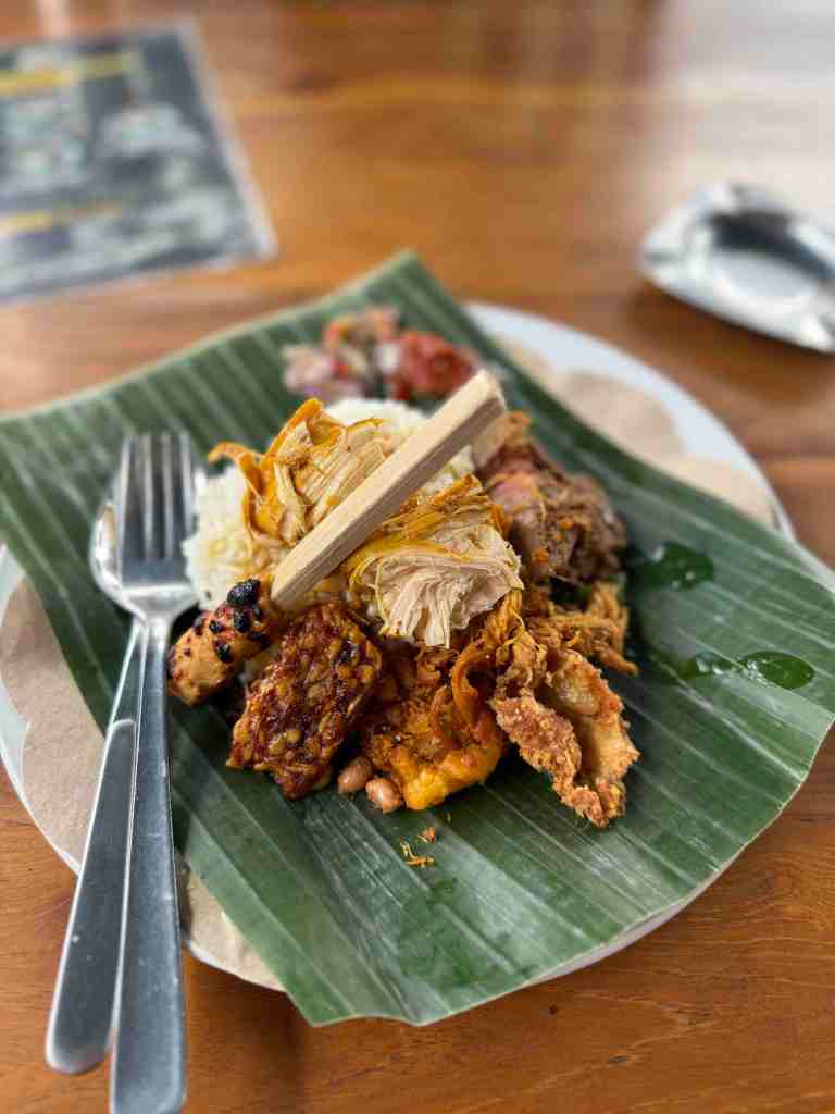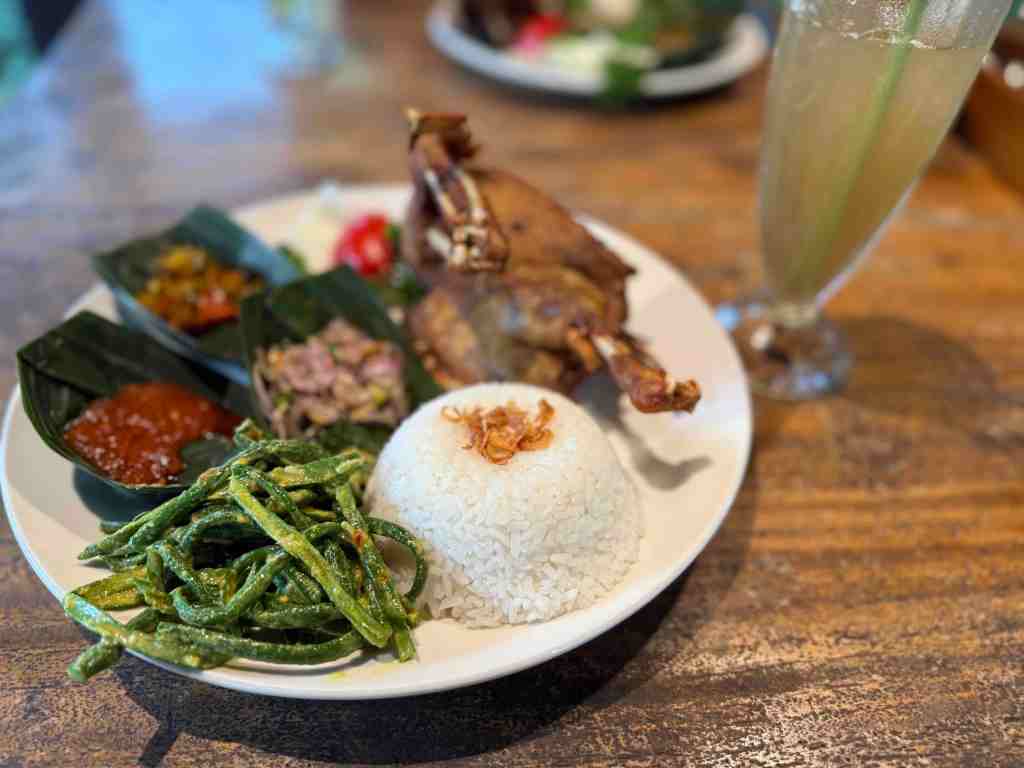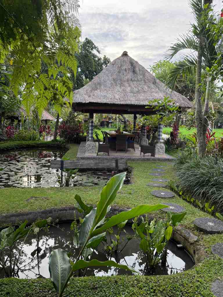 中午去local餐厅吃巨好吃的nasi camper,人民币十块钱吃到那么多肉和蔬菜。吃饭的时候不断也有美国游客进来,大家干脆凑了一桌,不停感叹好好吃。之后去换了钱,吃椰子冰淇淋的affogato,陷在大沙发里看着川流不息的人群。好巧在街上碰到民宿的老板下班,他本身是学校的英文老师,就让我跳上他的摩托一路风驰电掣的把我载回了民宿,不用冒着生命危险在路上吃尾气,何其幸运。晚上跟我新认识的澳大利亚老太太邻居去稻田里吃脏鸭饭,她是悉尼一所高中的数学老师,坐在稻田的小凉亭里,我听她聊起最爱的是中国电视剧,简直要笑死。老太太如数家珍的给我说白鹿,罗云熙,吴磊,迪丽热巴,直到她说王鹤棣最帅的时候,我简直笑的不行。跑这儿千里遇知音来了。